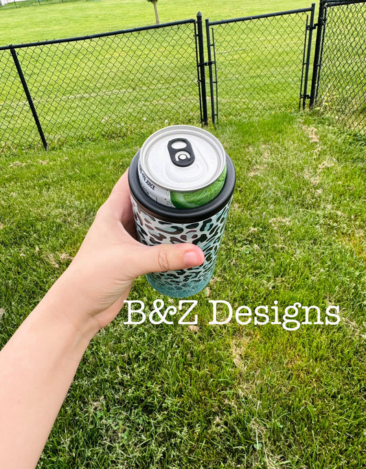 Blue Leopard & Glitter 12oz Can Cooler Combo